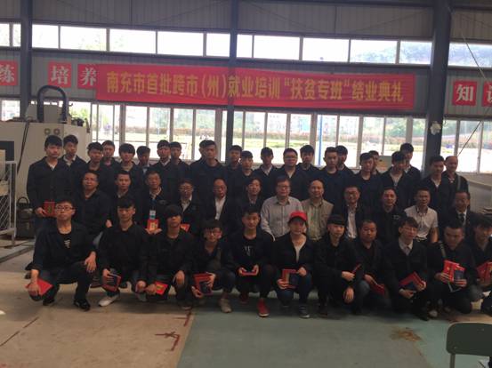 为期60天的四川省首批跨市(州)扶贫培训“扶贫专班”于4月28日圆满结业。28日上午10:00,南充技师学院举行了隆重的结业典礼。南充市人力资源和社会保障局陈劲松副局长、职业能力建设科杜朝斌科长等领导出席。南充张澜职业教育集团常务理事、教育教学总监李选华,集团常务理事、南充技师学院顾问李兴荣、副院长龙开万、集团教管委副主任江万金和承担培训任务的机械工程系领导、老师及扶贫培训专班的全体学员60余人参加了结业典礼。