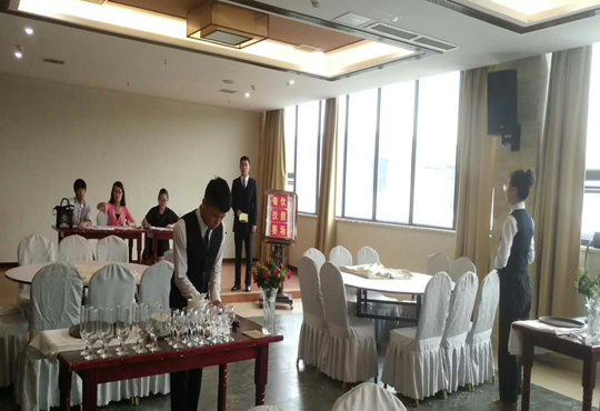 服务管理系酒店服务与管理专业师生和酒店全体员工到场观摩了比赛,服务管理系系主任、高级技师明芳宇到场指导。