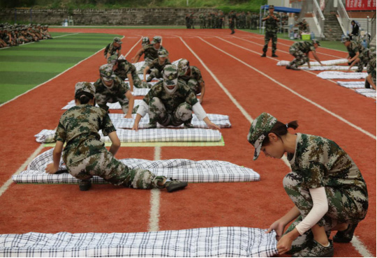 南充技师学院多扶校区近2300名2019年新生参加了军训会操暨总结表彰大会。