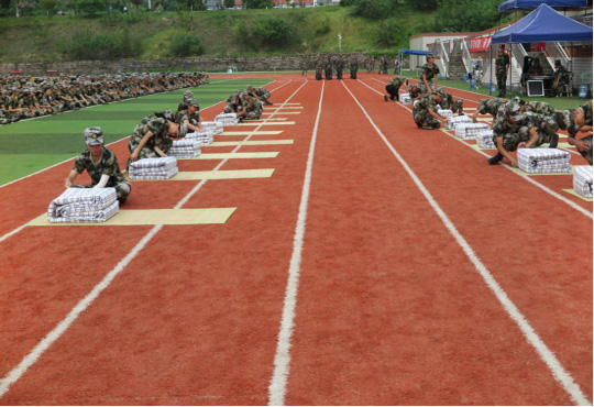 军训会操分为四个部分,2019级汽修9班、2019级护理1班、2019级数控1班 、2019级运输4班等12个班级代表全体参训班级进行了进行队列停止间与行进间动作展示;20名同学现场叠军被展示;教官为进行了军事项目《一招制敌》、《倒功》展示;学院国防委员会的同学表演了战术基础及战地救护。精彩的军训会操及军事技能展示多次赢得了全场观众热烈的掌声。