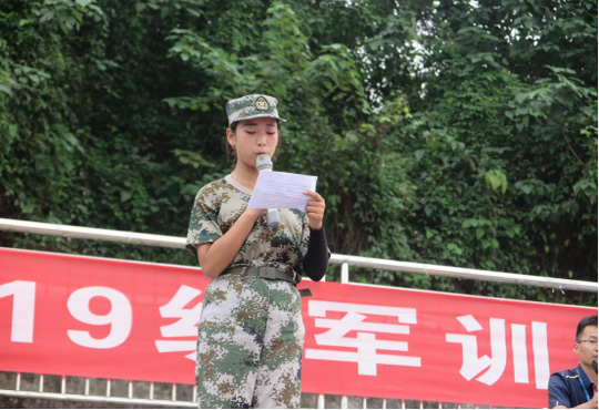 优秀学员代表19级酒管一班赵彤同学、军训教官代表蒲佳霖分别在会上发言汇报了军训成果,感谢学院为他(她)们的提供了参加军训的机会,通过军训受到教育,得到磨炼,爱上了班级、爱上了学院。