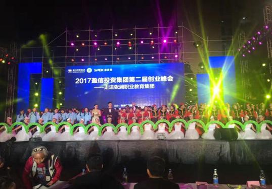 紧接着,深圳盈信投资集团董事长林劲峰先生为本届峰会致开幕词并宣布峰会开幕,顿时,几十组烟花齐放,把整个夜空点缀得五彩斑斓,艳丽无比。随后进行了授杯仪式,林劲峰先生将代表传承、奋斗和共享精神的“盈信杯”授予本届峰会承办方——思贝克电子集团总裁刘晓东先生。随后举行了“盈信助学金”成立仪式,盈信集团携多家企业在“中国张澜教育基金会”中,为张澜职教集团专项设立了“盈信助学基金”,张澜职教集团理事长王晓晴先生现场接受了由林劲峰先生代表基金会给于的300万元捐赠。