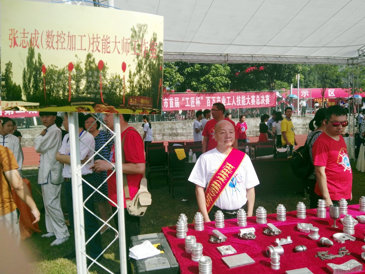 在比赛如火如荼进行中,学院数控加工技能大师工作室南充技能大师张志诚携学生制作加工的数控加工作品、学院服务系的“春之韵”、“花式茶艺”、“中餐雕刻拼盘”等项目进入现场展示。吸引了省市领导、业内精英和大量观众前来参观留影。现场领导和观众无不叹为观止,一致认为:“南充技师学院棒棒的!”